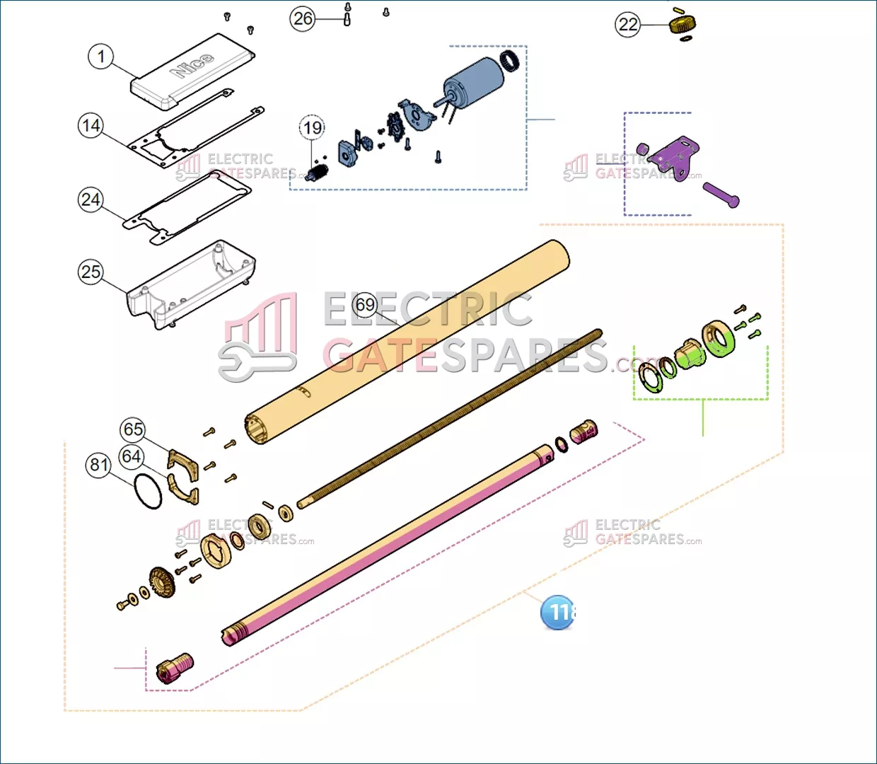 Nice SPAMG276A00A Корпус вниз + червячная передача